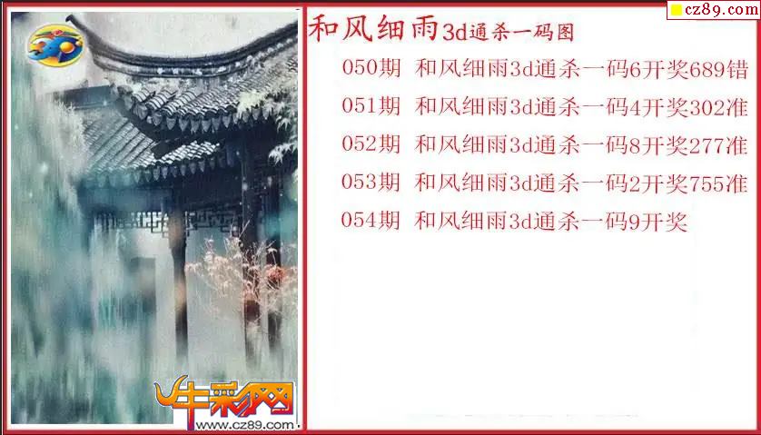 > 26年054期3d 和风细雨通杀一码图